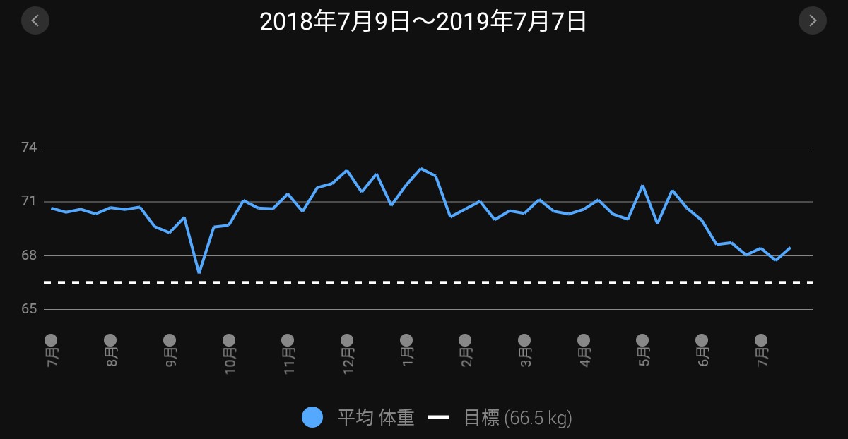 パワーは上がりましたが、体重は変化なしです。体脂肪のデータはグラフ化できなかったので